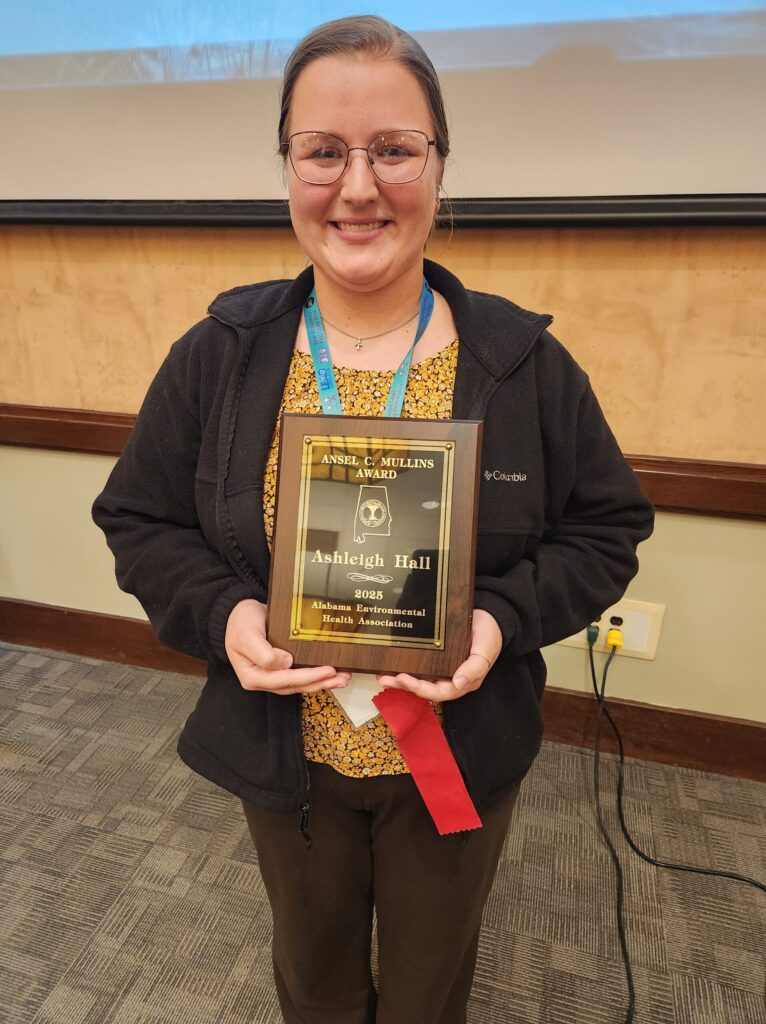 The Alabama Environmental Health Association presents a student award each year to a Junior or Senior undergraduate student in Environmental Health or a closely related field. The scholarship is awarded in the amount of $1,000